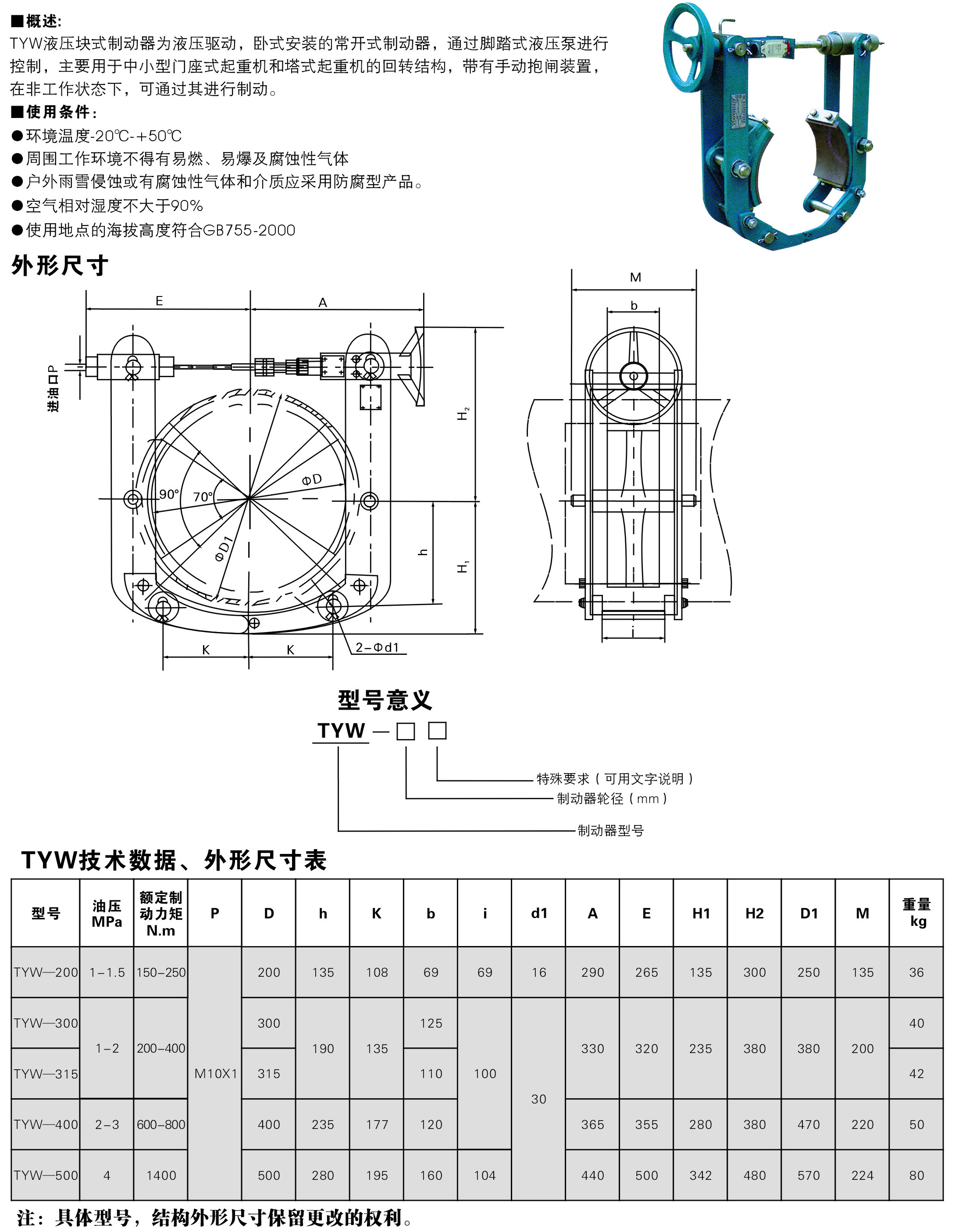 TYW腳踏液壓塊式制動(dòng)器