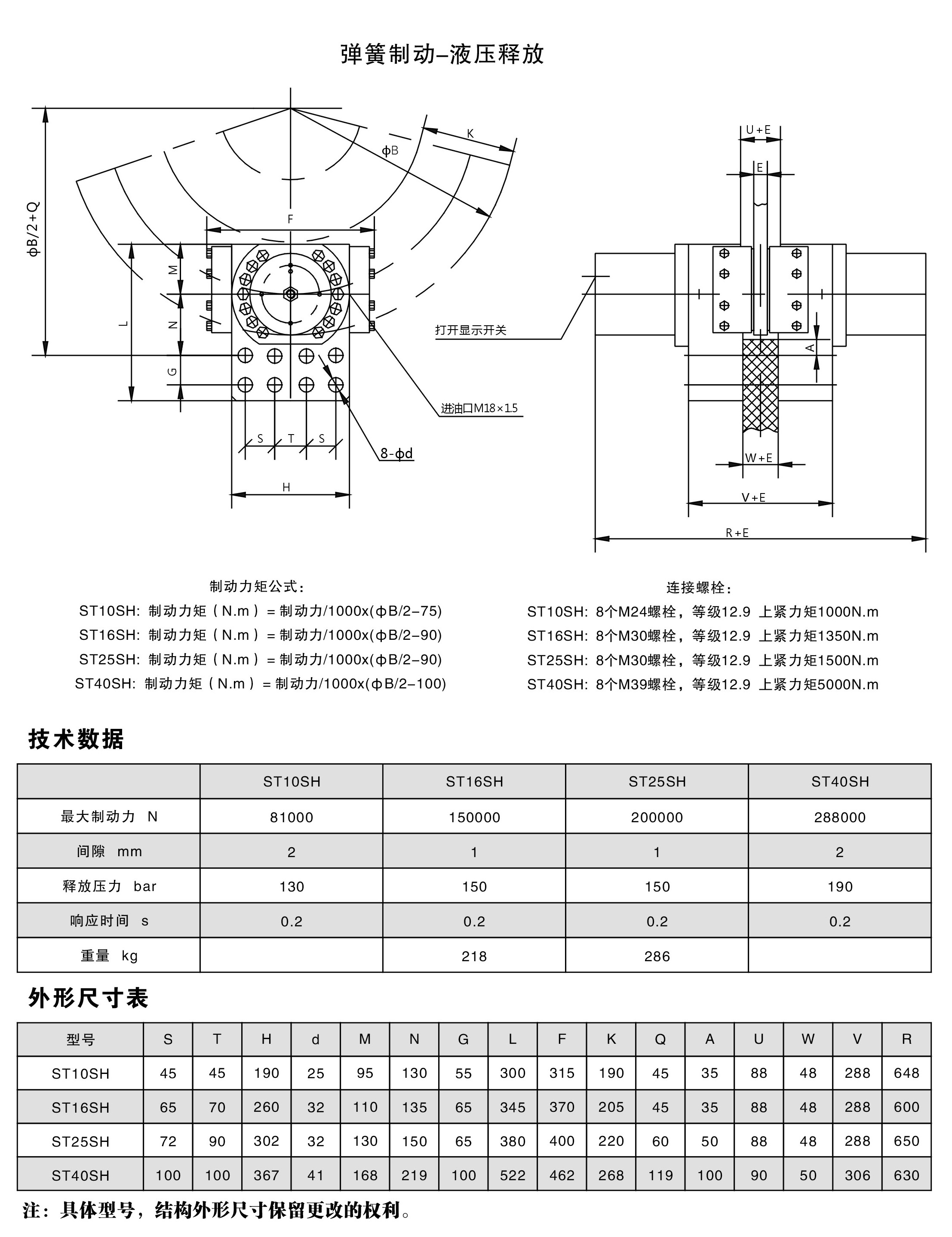 ST10SH/ST16SH/ST25SH/ST40SH液壓失效保護制動器