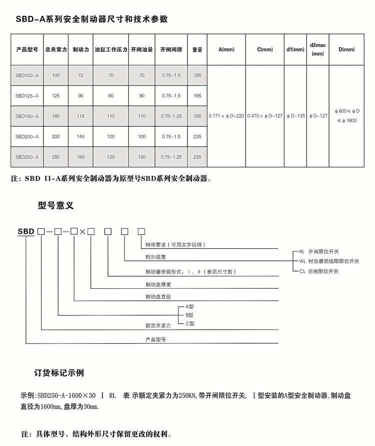 SBD-A液壓盤式制動器